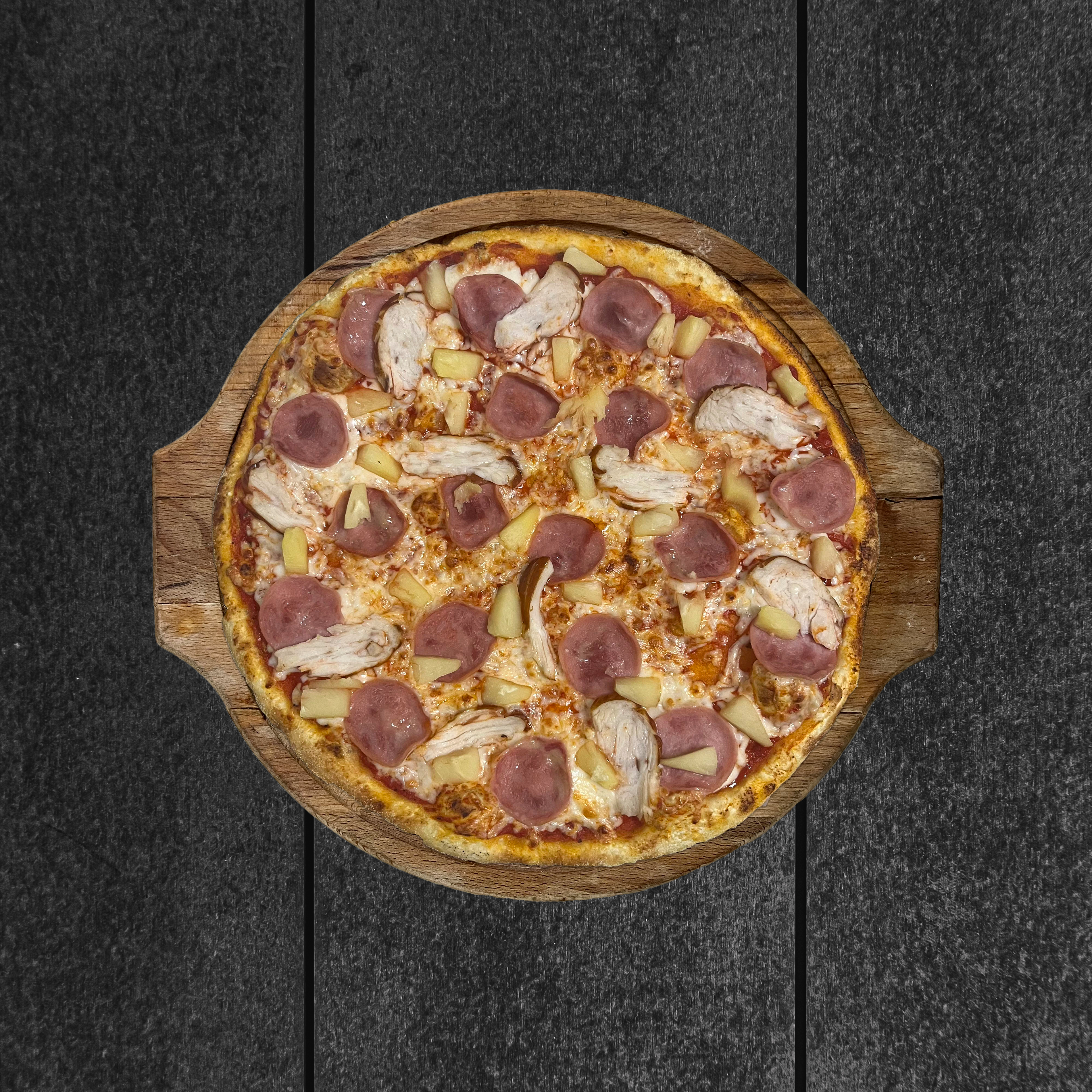 (32 см), тесто, копчёная курица, ветчина, ананас, соус томатный