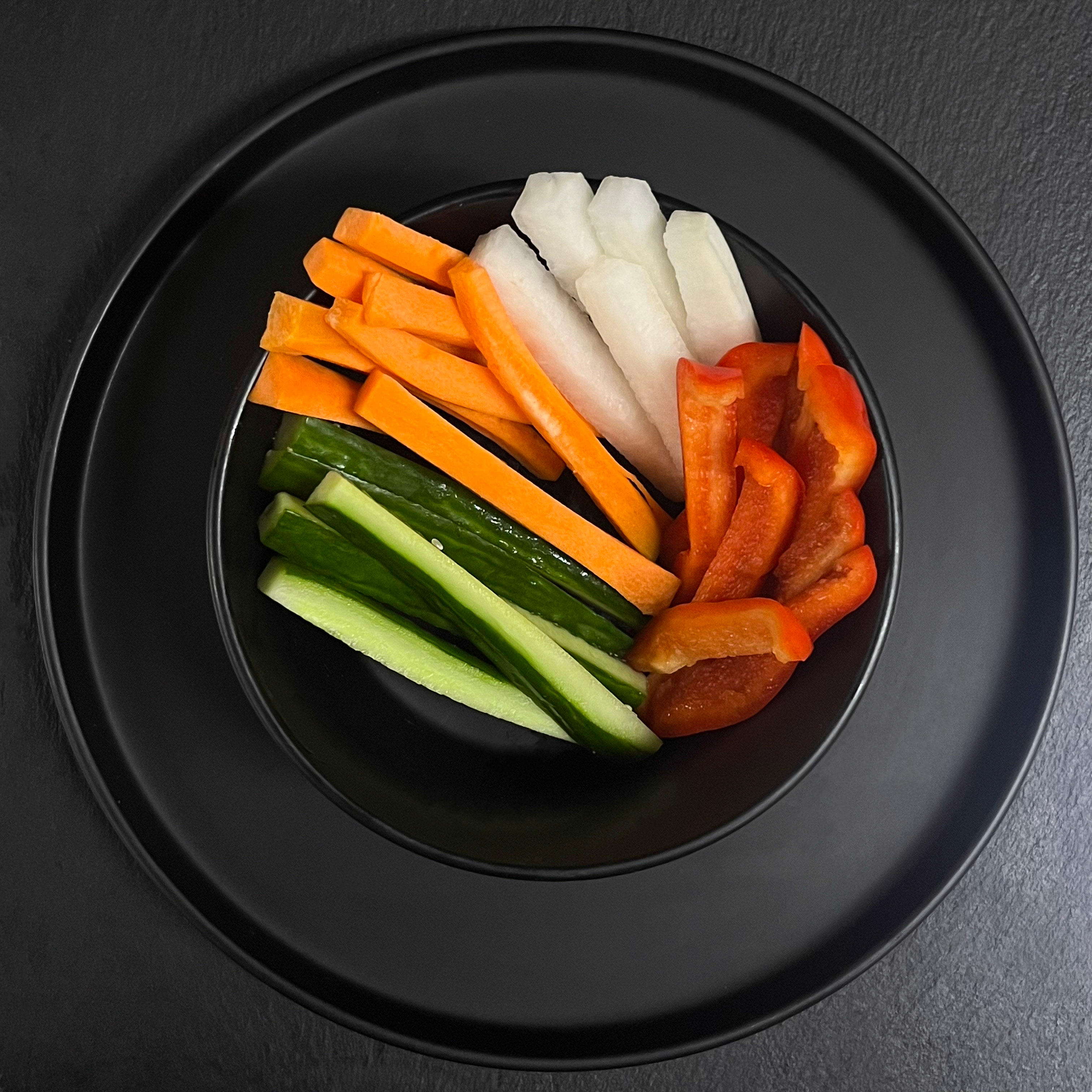 перец болгарский, дайкон, огурец, морковь
